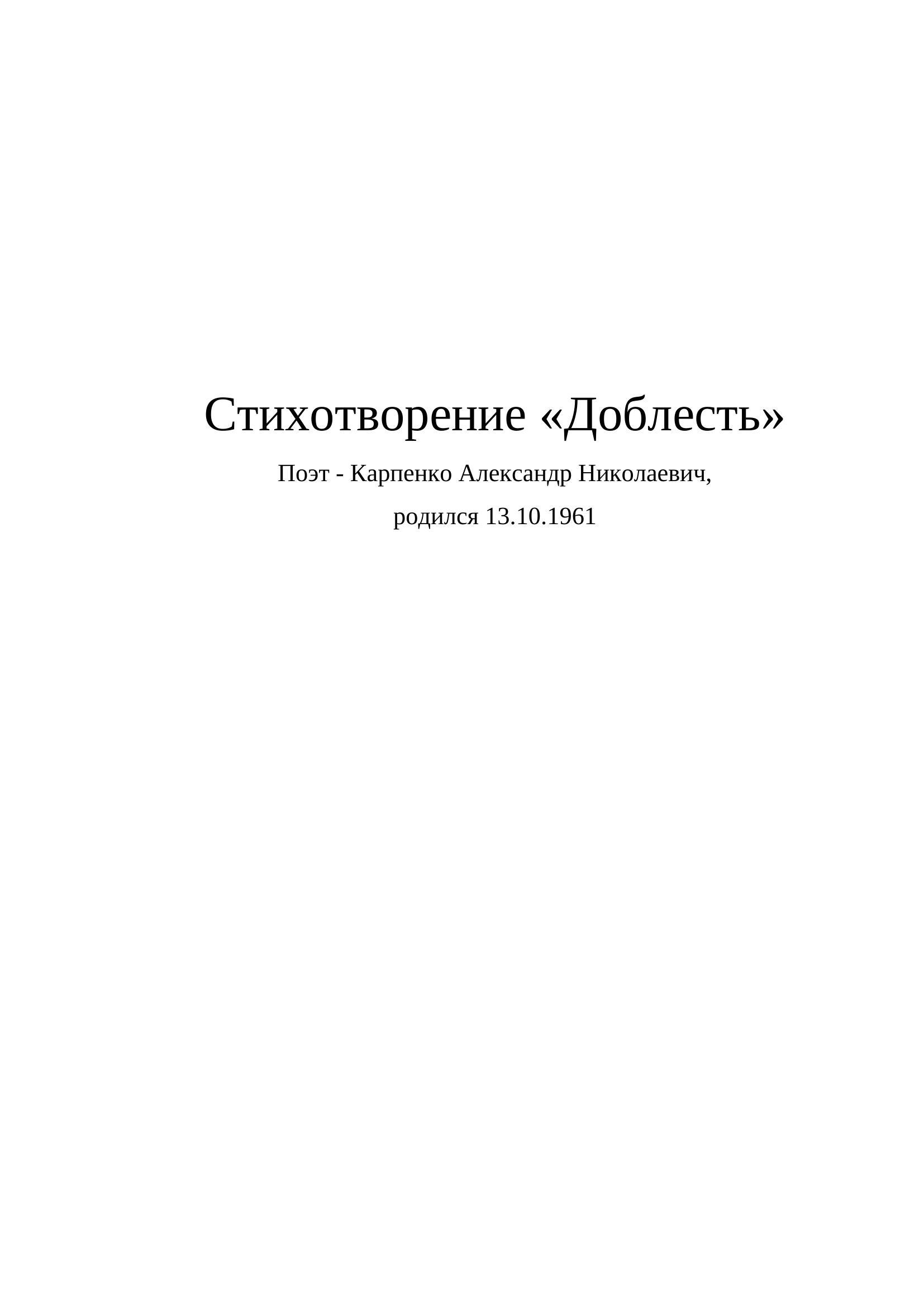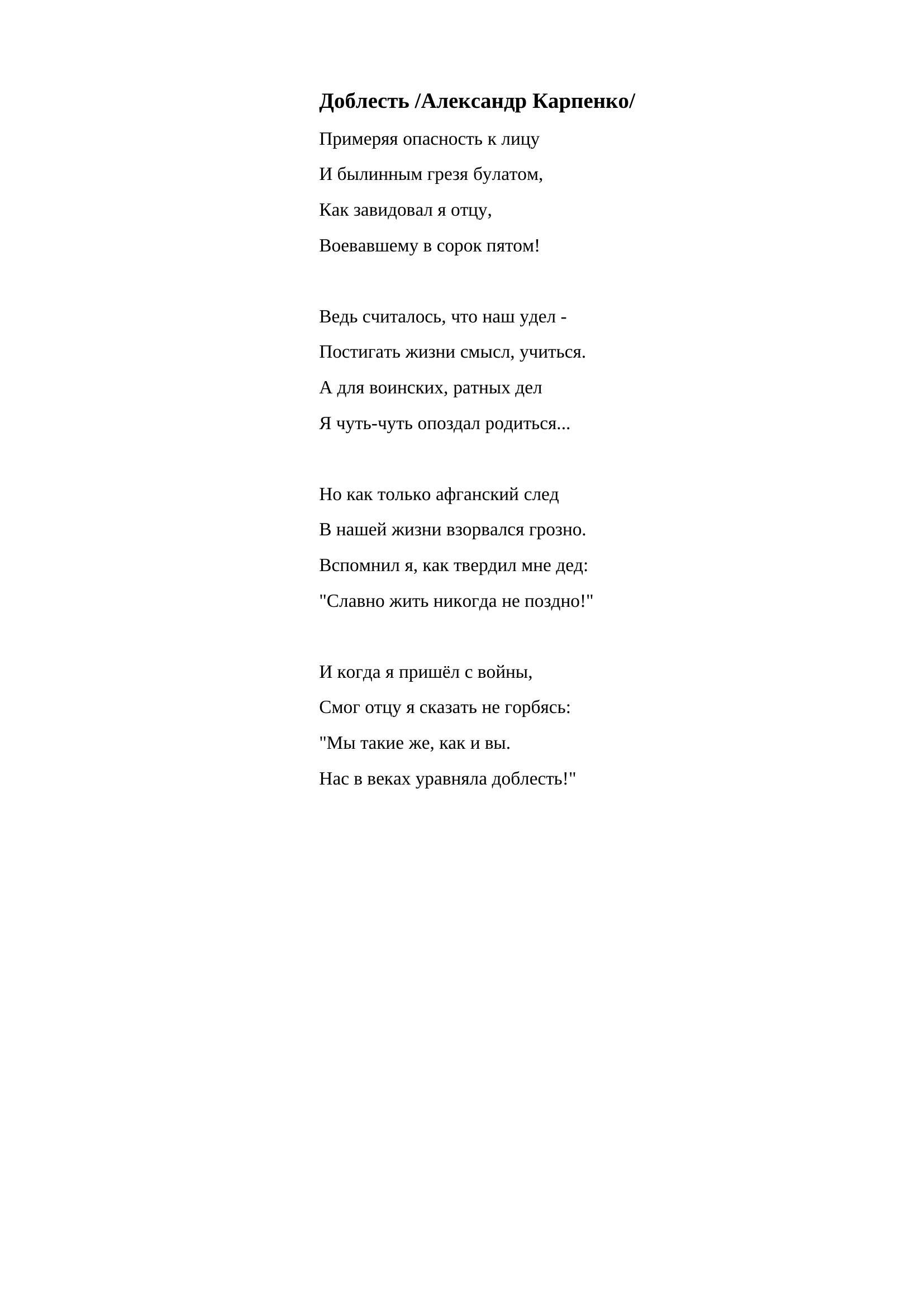 Стихотворение "Доблесть", читает автор - Александр Карпенко