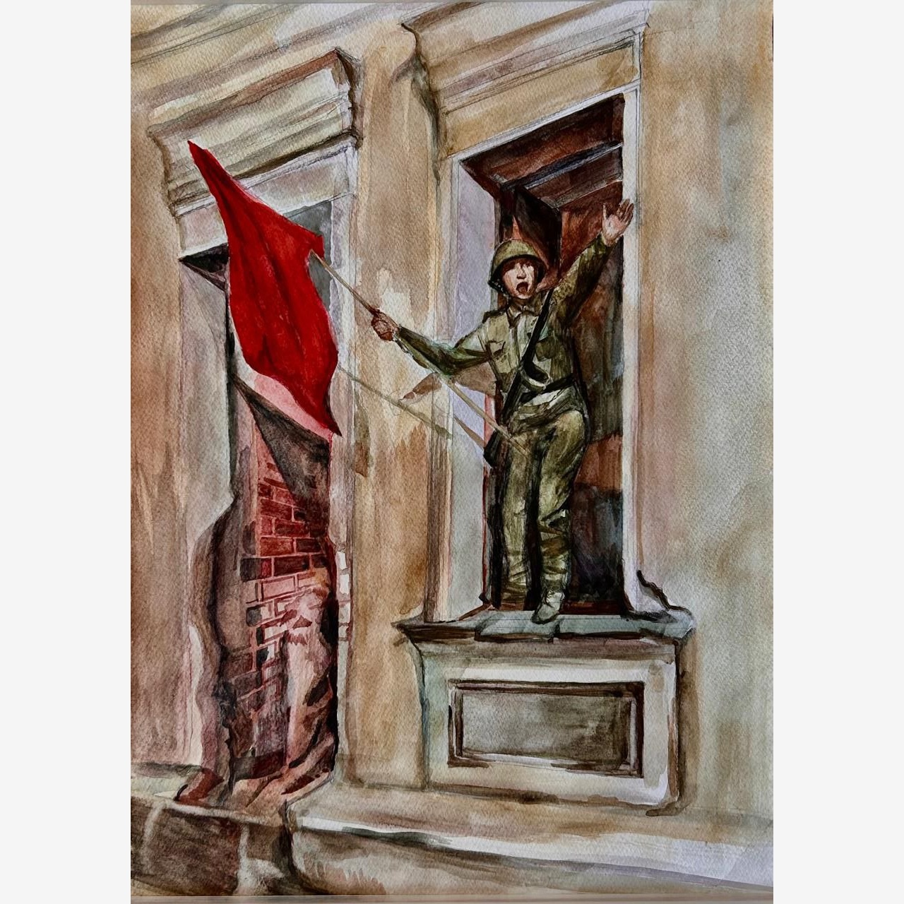 Работа акварелью на военную тематику
