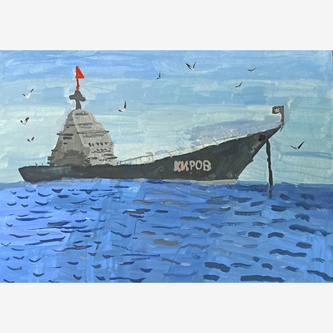 Художественная работа Анны Галищевой "Крейсер Киров - защитник Ленинграда". В годы блокады крейсер «Киров» стал одним из символов обороны Ленинграда.