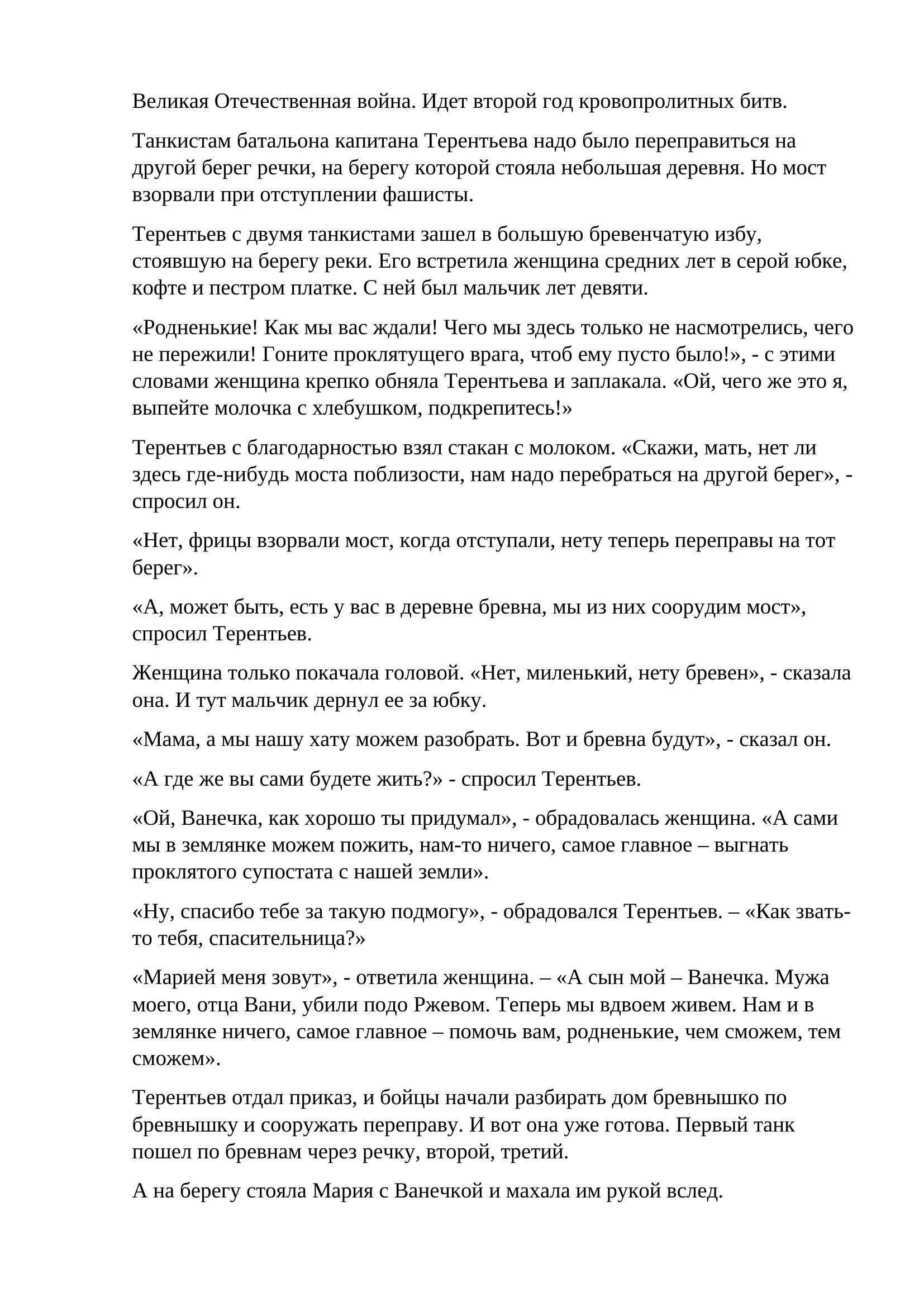 Эта работа - рассказ о том, что случилось во время одного из дней Великой Отечественной войны