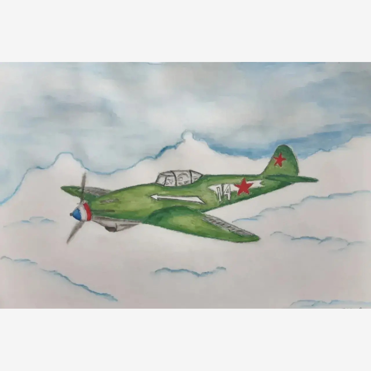 На рисунке изображен самолет, который охраняет наши границы от врагов.