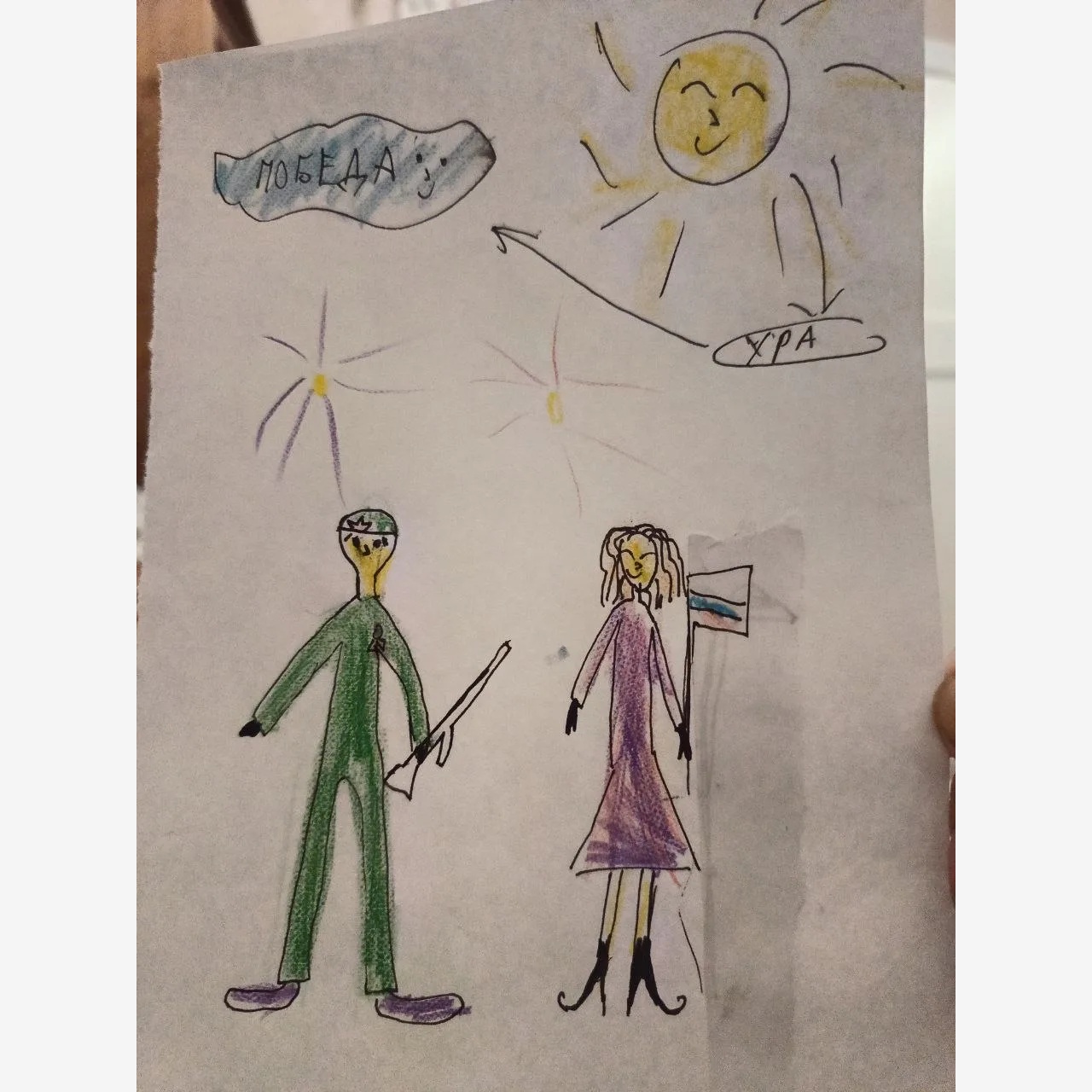 Простой и радостный схематичный рисунок, передающий момент нашей Победы!