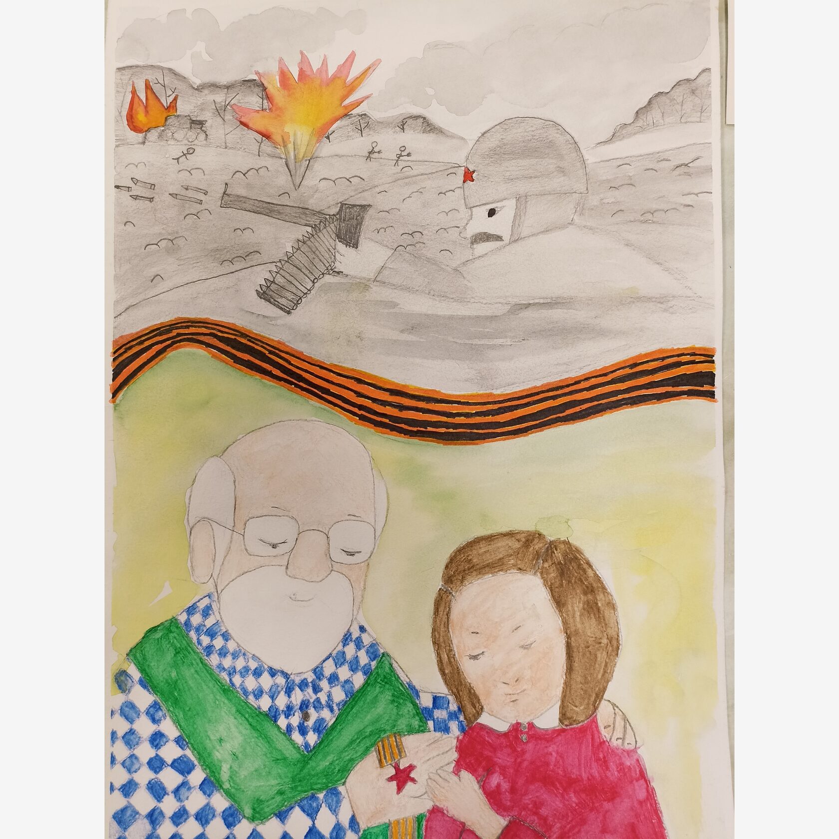 Композиция 30*40 , рисунок выполнен в смешанной технике (акварель, цветные карандаши,маркеры)