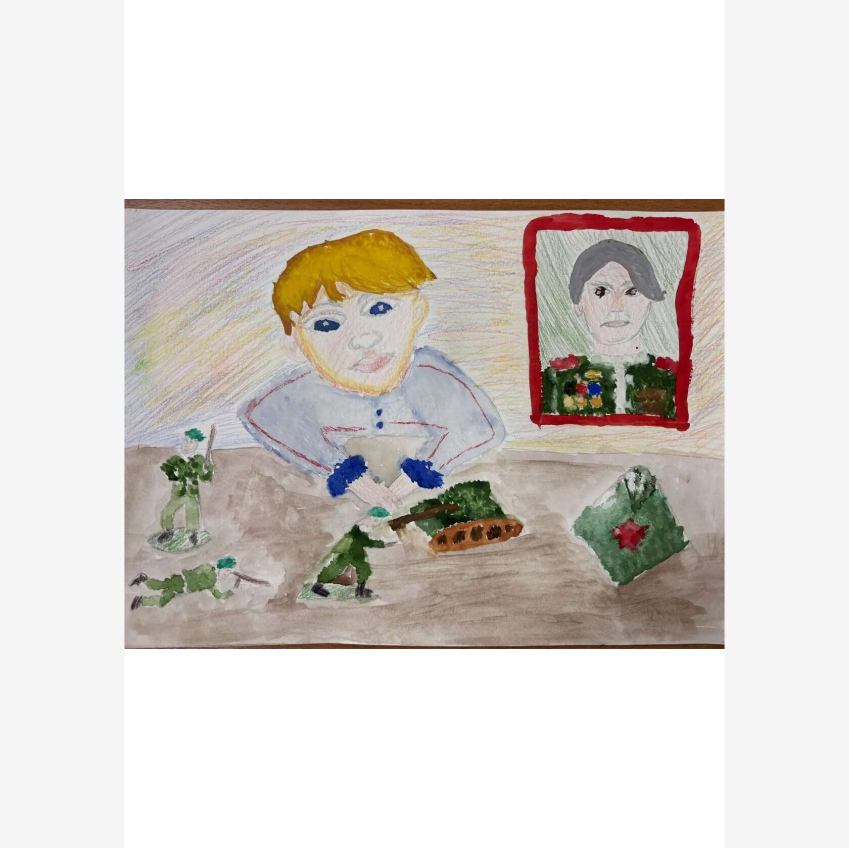 На листе бумаги развернулось настоящее военное сражение, которое воспроизводит внук своего деда. Дед в свое время отважно сражался за Родину и часто рассказывал об этом