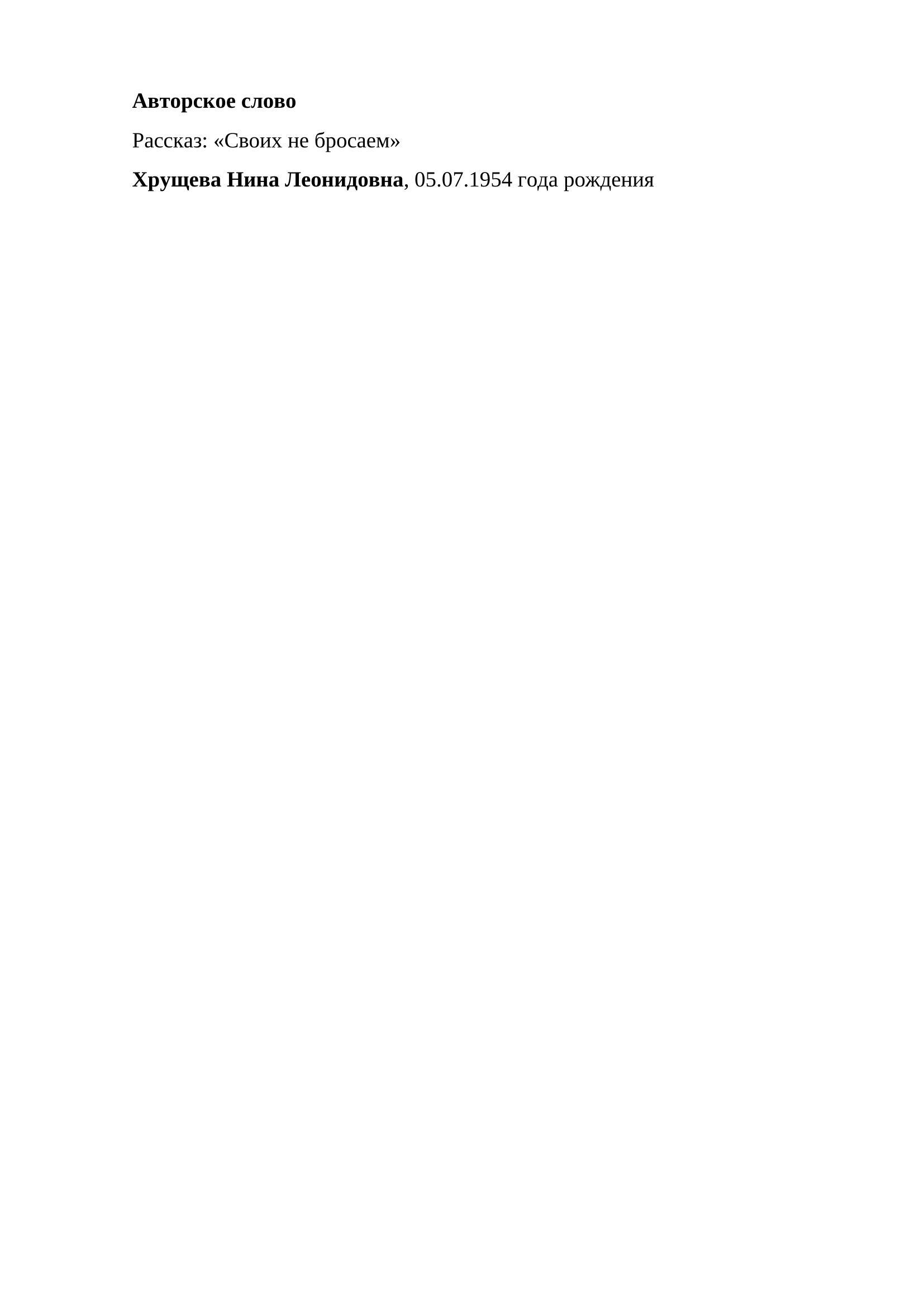 Рассказ "Своих не бросаем"