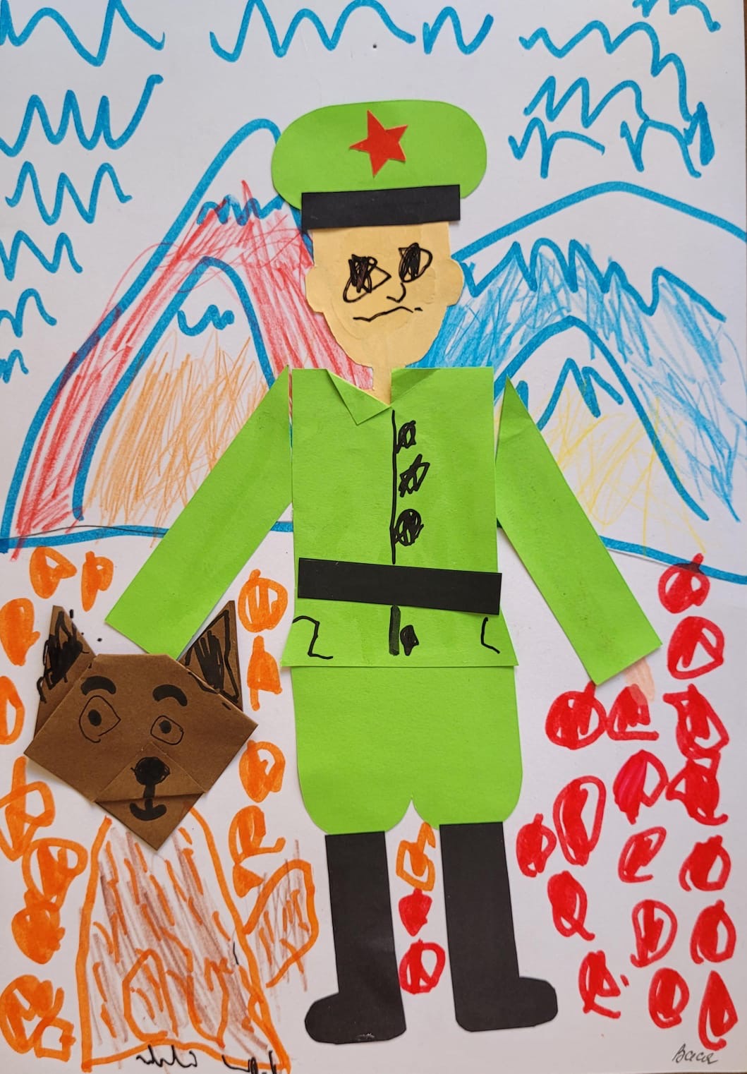 Шакуров Василий, 7 лет. Работа символизирует связь поколений, преемственность и важность памяти о войне. Дедушка, являясь не только прообразом мудрости, но и источником вдохновения, напоминает о том, что героизм - это не только подвиг, но и воспоминания, отражающие ценность жизни. Его история, полная смелости и самопожертвования, служит напоминанием о значимости семейных традиций и о том, как важно сохранять память о тех, кто защитил нашу Родину.