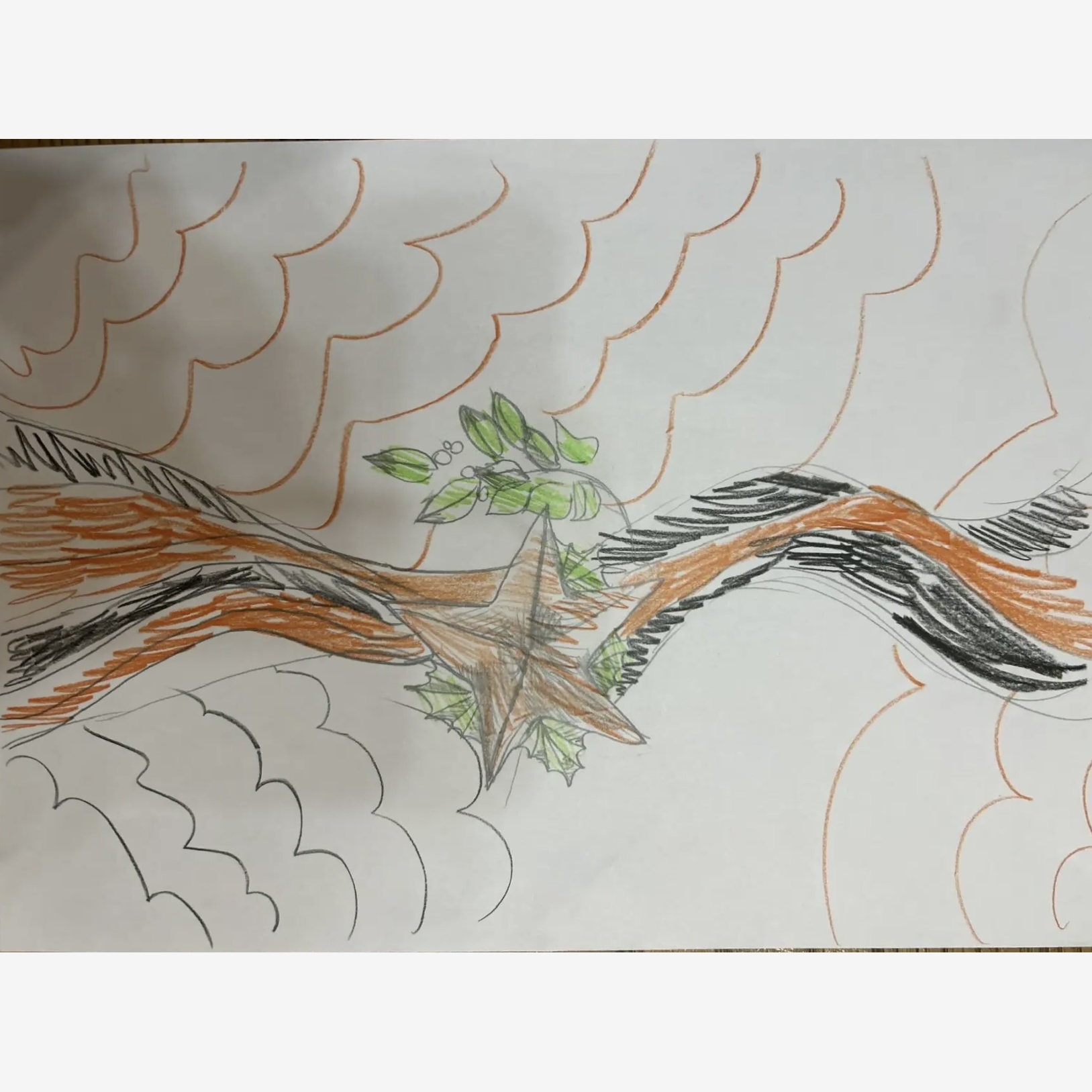 На рисунке изображены георгиевская лента, как символ Победы, и лавровая ветвь как символ мира.