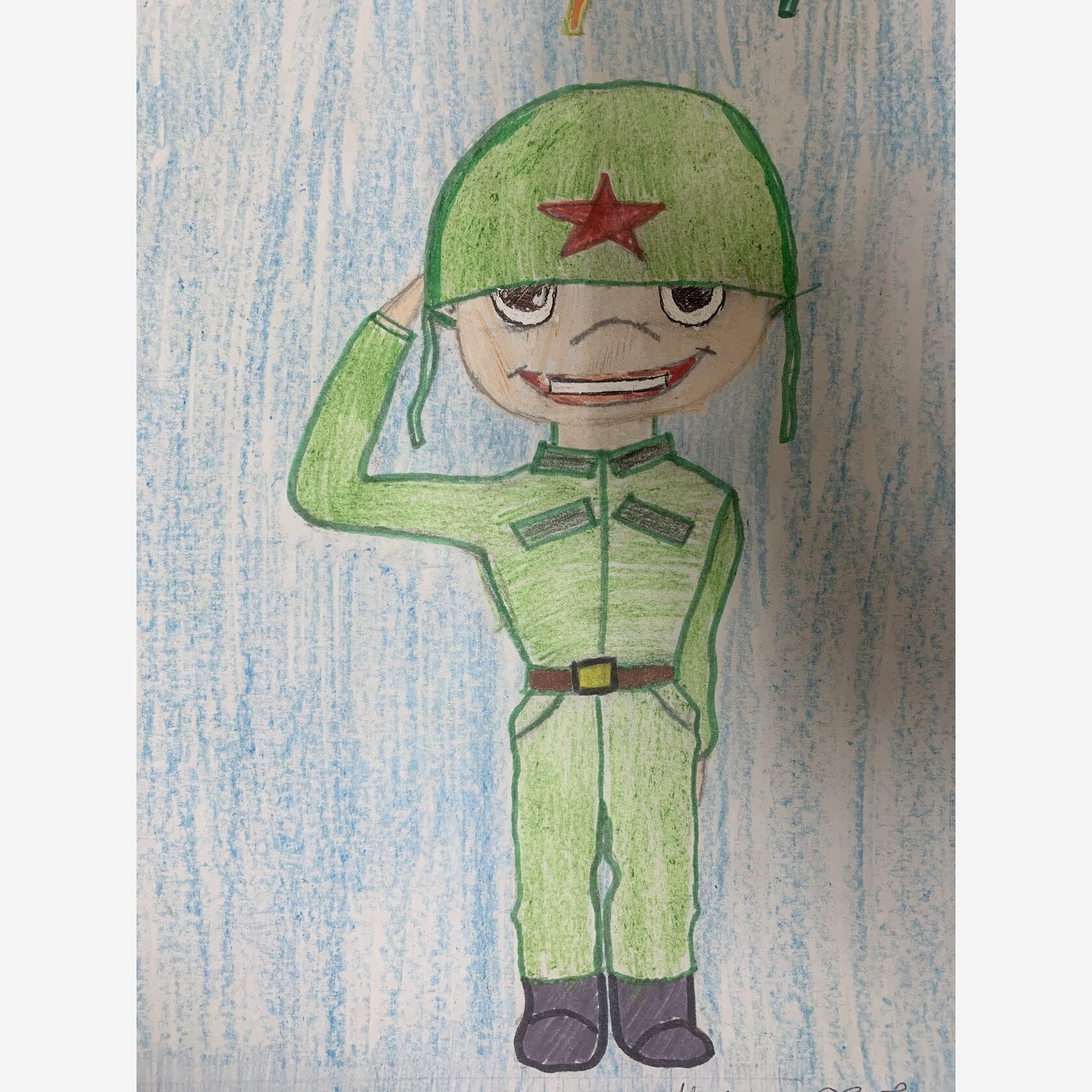 На рисунке изображен старший брат, который служит в Российской Армии.