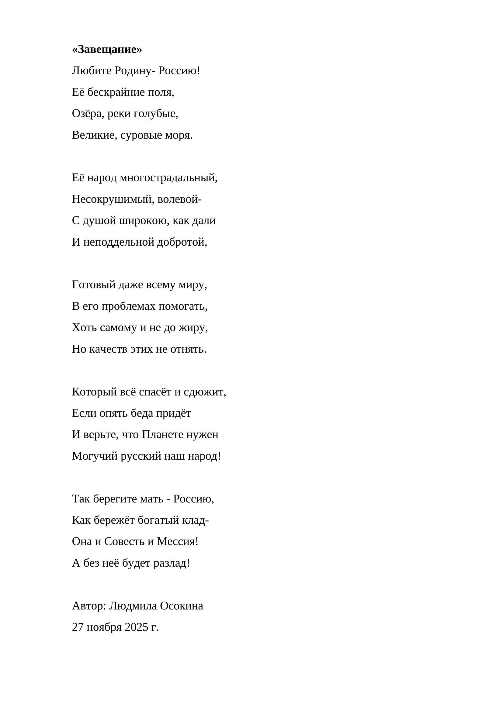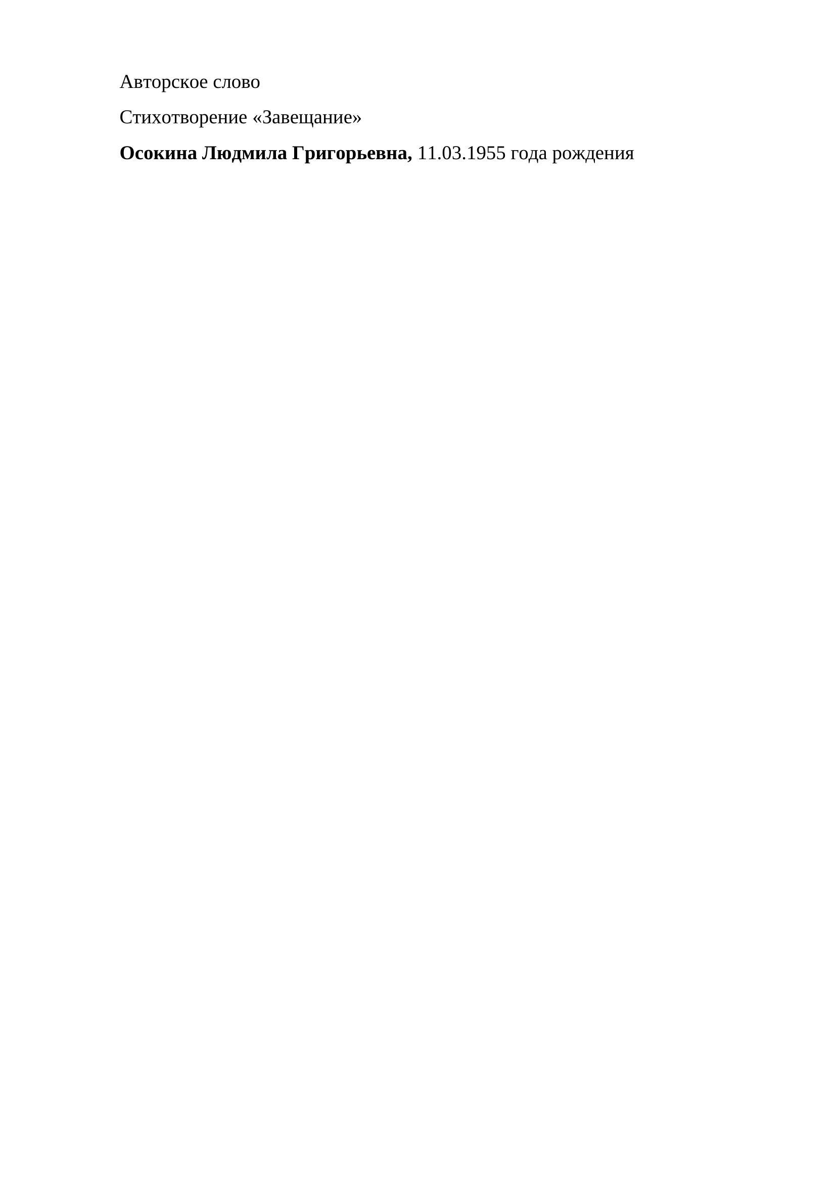 Стихотворение "Завещание"