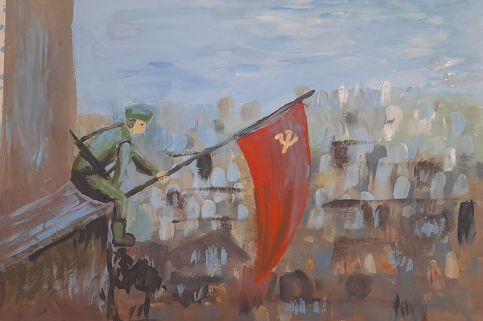 "Знамя Победы ". Гуашь, формат А3.