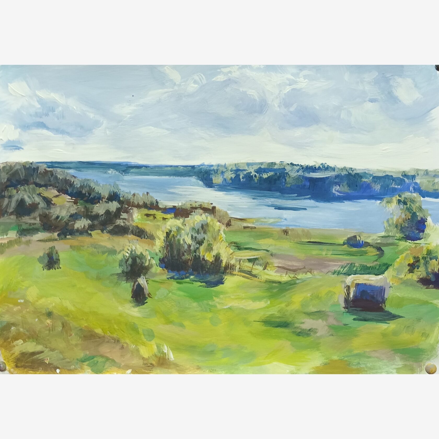 На моей картине — просторы России: широкие поля и извилистые реки, которые текут через нашу необъятную страну. Эти пейзажи знакомы и дороги сердцу каждого. Рисуя их, я ощущала огромную гордость за свою страну.