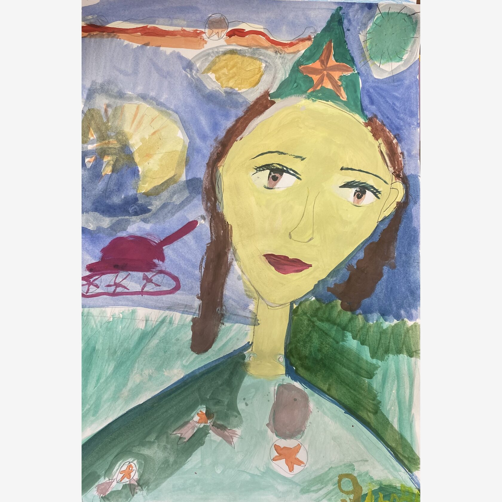 Моя картина выполнена на бумаге формата А3. Я нарисовала девочку по имени Вера, которая каждый день ждала возвращения отца с войны. Девочка часто представляла эту встречу: она бежит к нему и обнимает крепко-крепко, чтобы ему больше не удалось уйти; надевает его форму с медалями, пилотку и читает военные стихи, которые учила к встрече.
