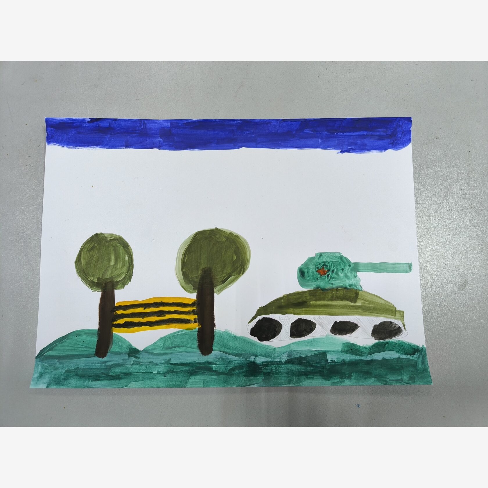 Празднование дня победы ,выставочный танк и георгиевская лента