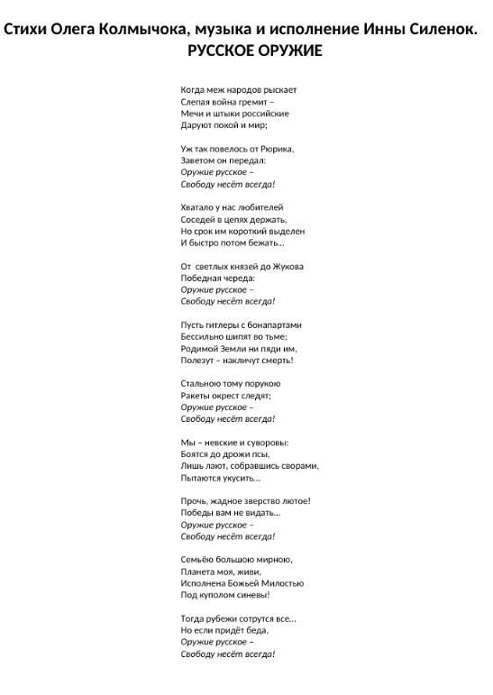 Музыкальный номер. Исполнение песни "Русское оружие"