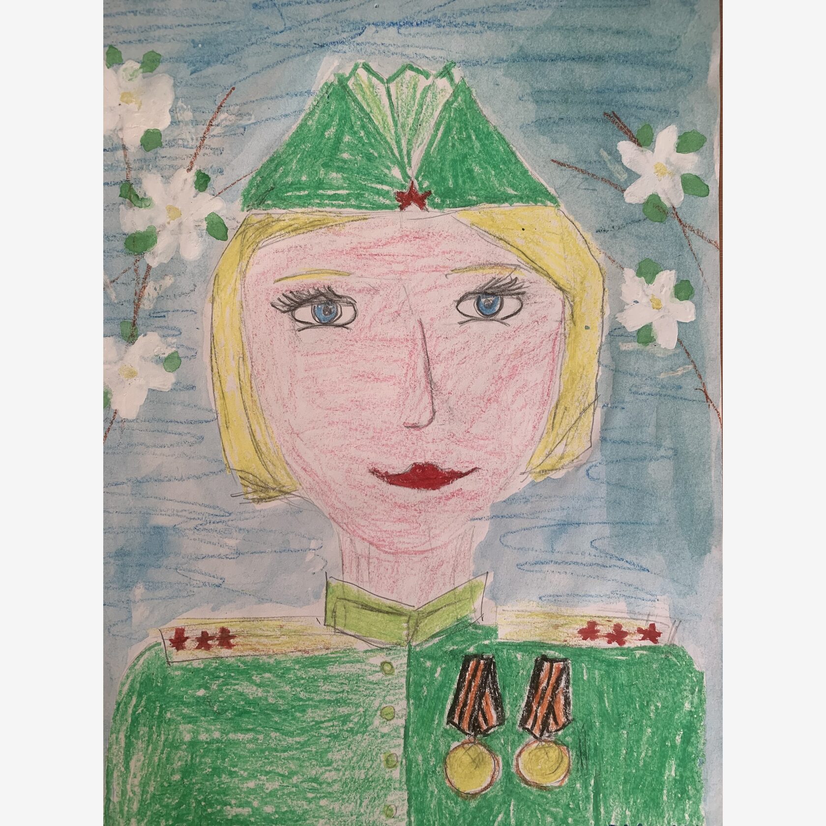 На рисунке изображена женщина , которая воевала с фашистами в ВОВ.