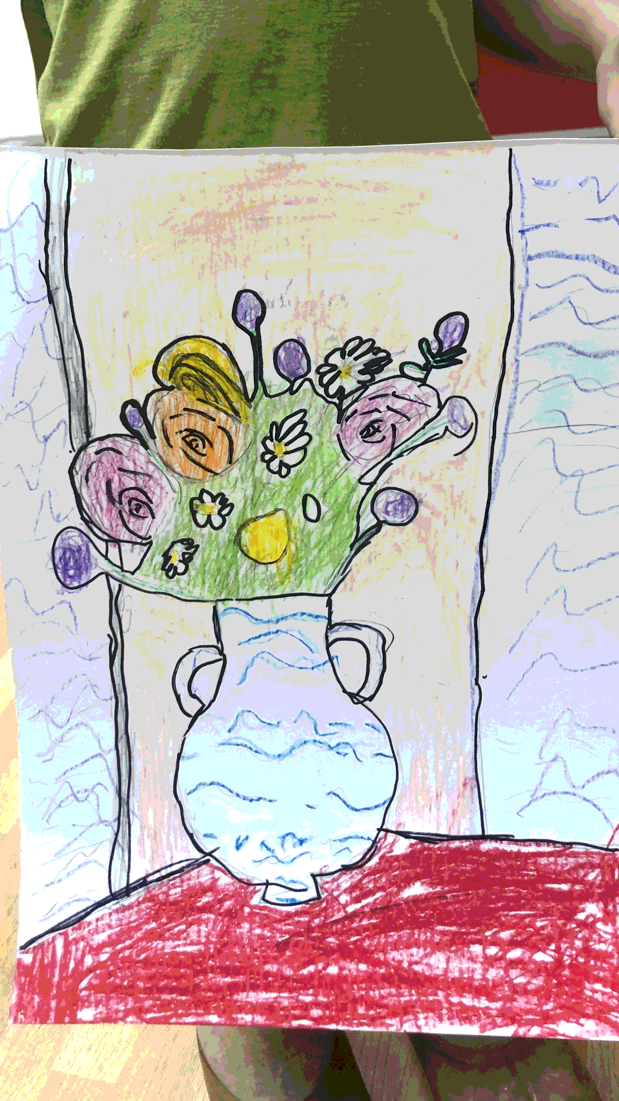 Артур изобразил праздничный букет — подарок к Дню Победы.