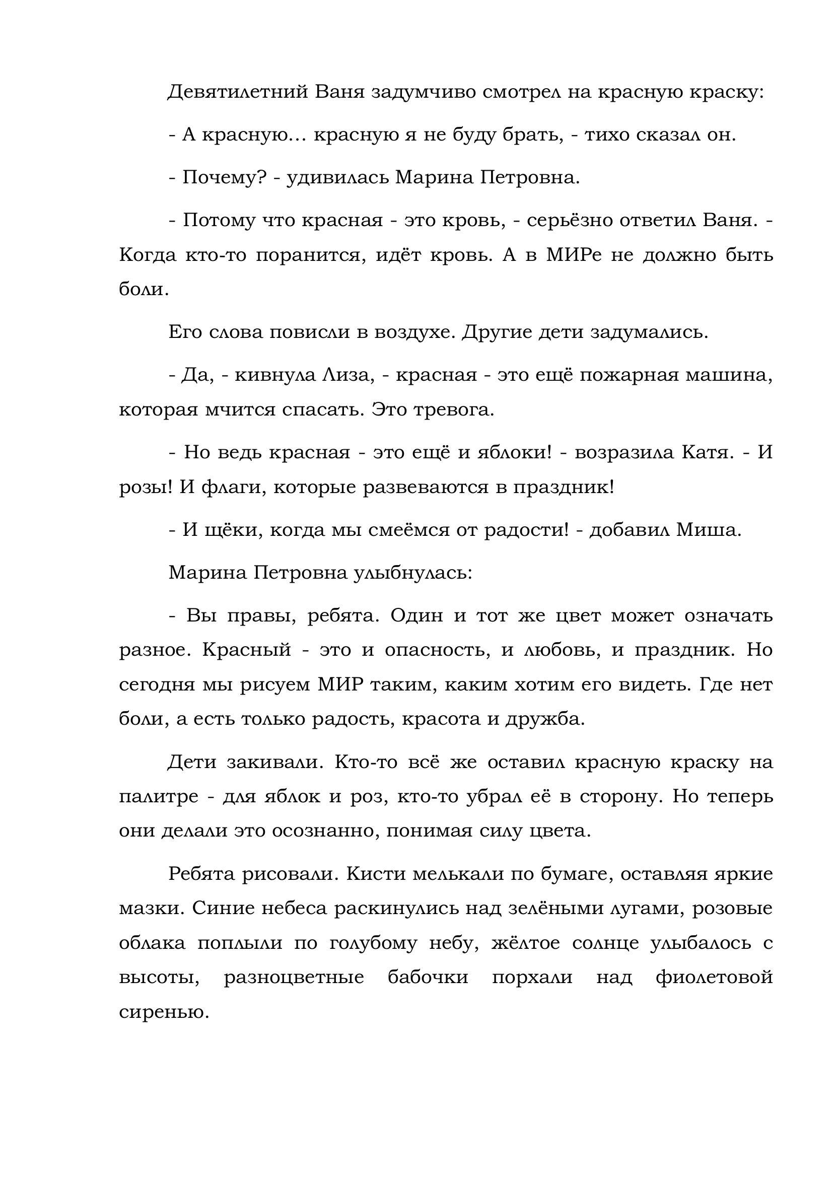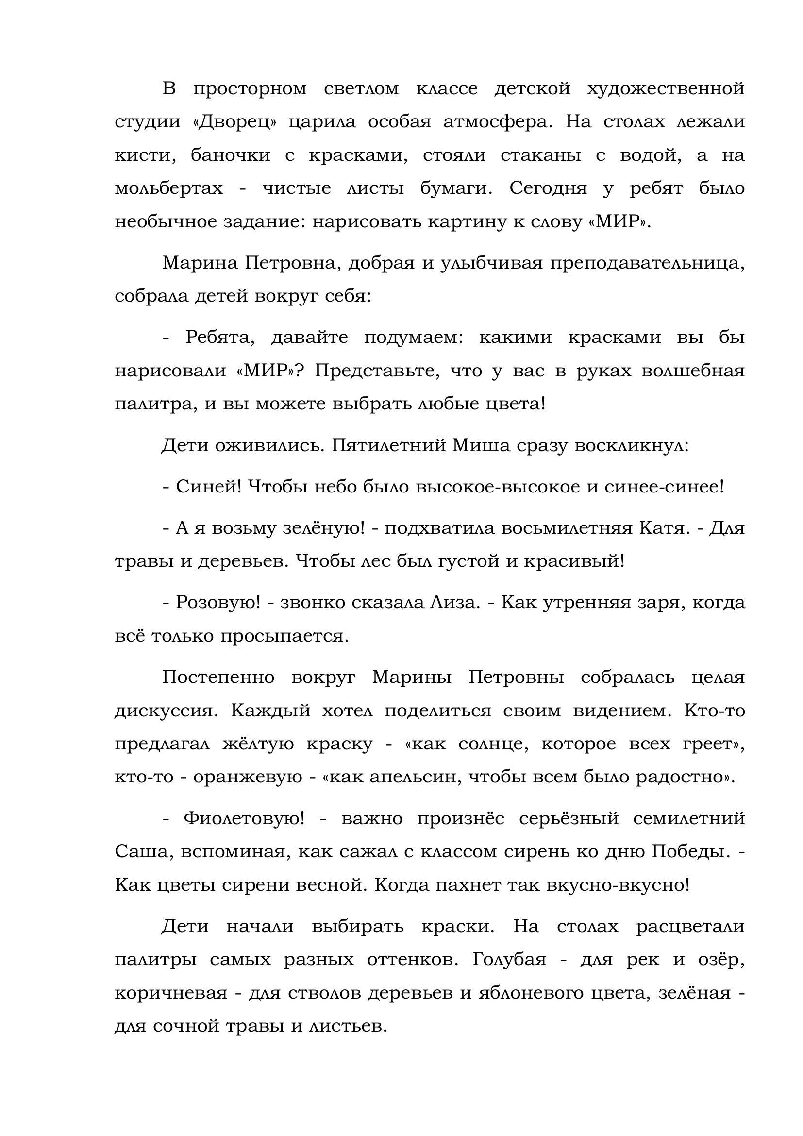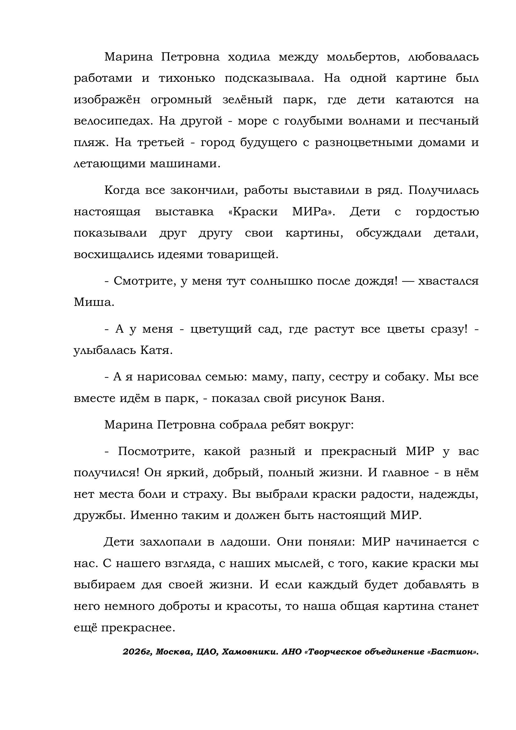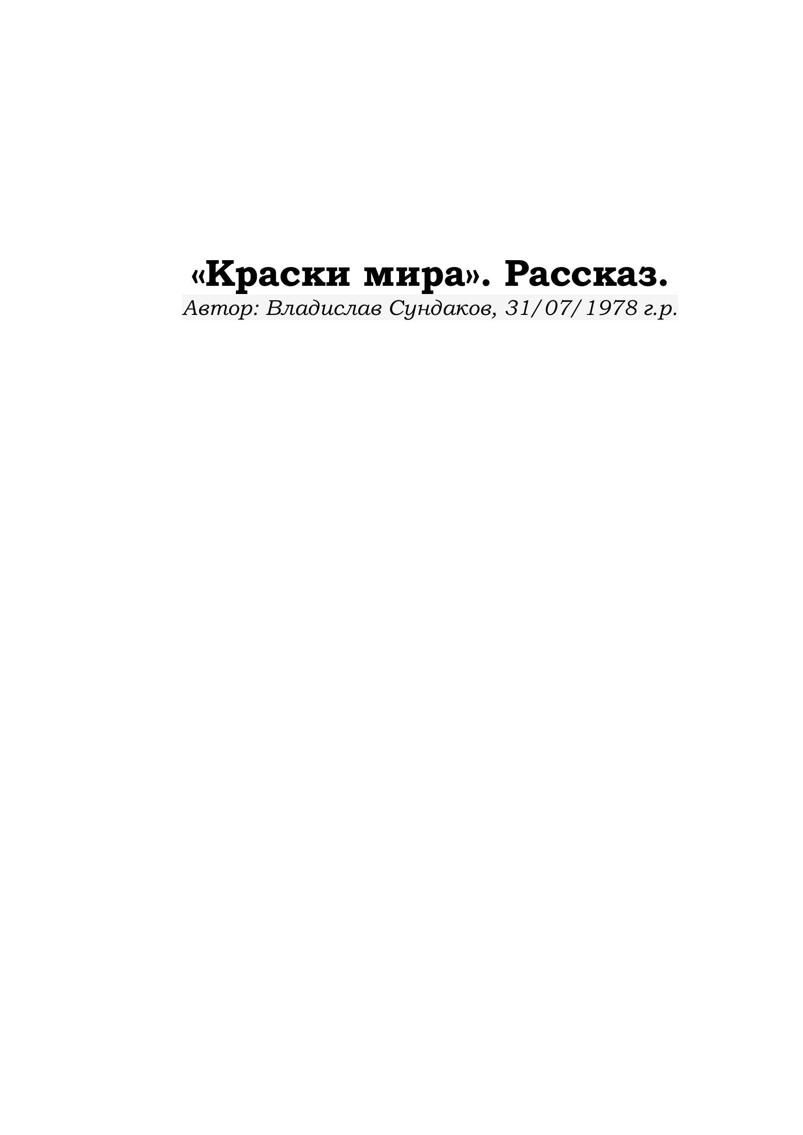 Рассказ "Краски мира". Авторский текст - В.Сундаков, Москва, ЦАО, Хамовники, АНО "Творческое объединение "Бастион"