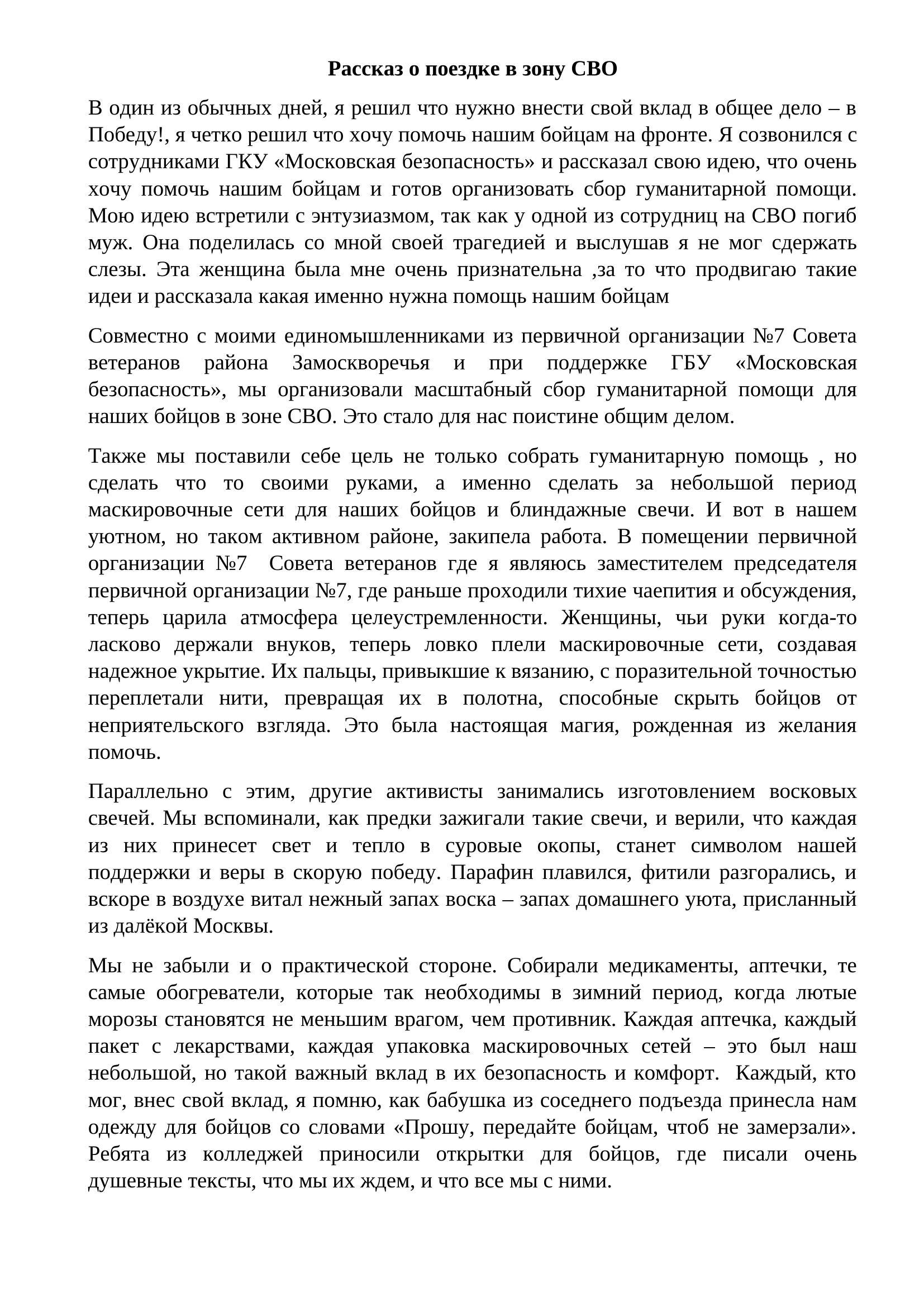 Рассказ о поездке на СВО