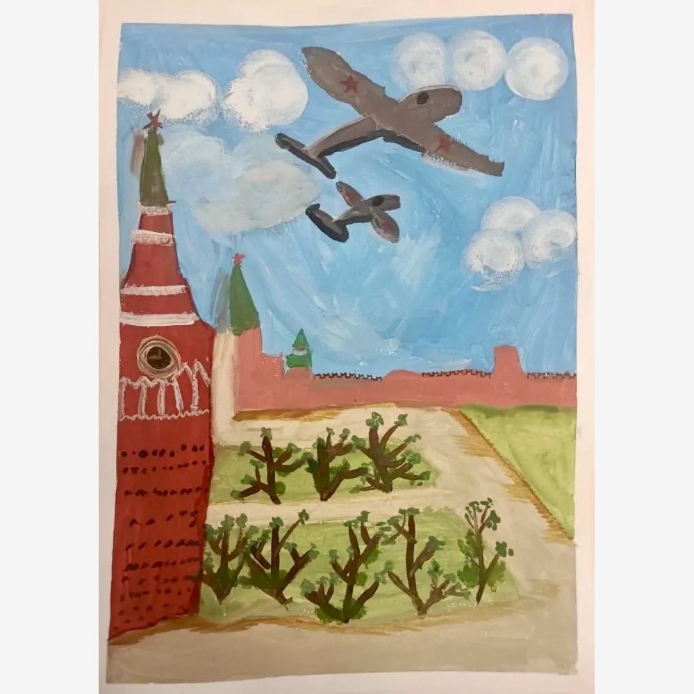 Библиотека №18. Максимова Валерия в своей художественной работе изобразила трепетный момент - долгожданное возвращение победителей на Родину в 1945 году.