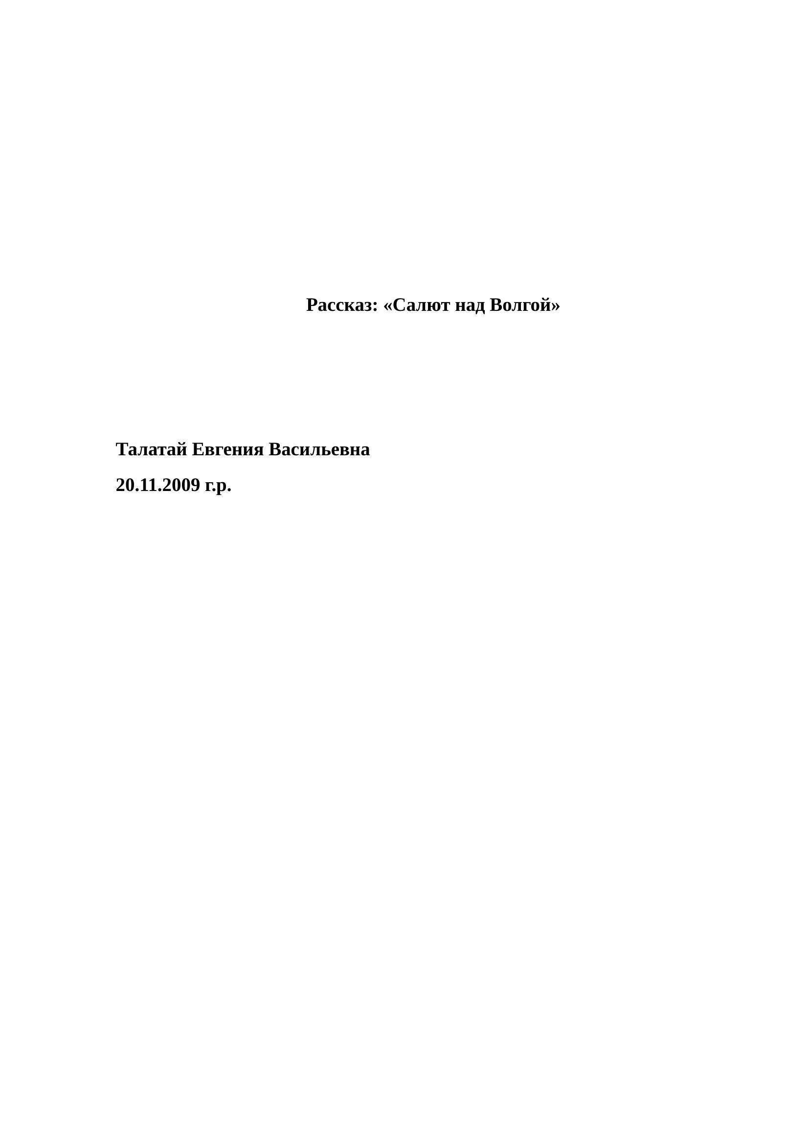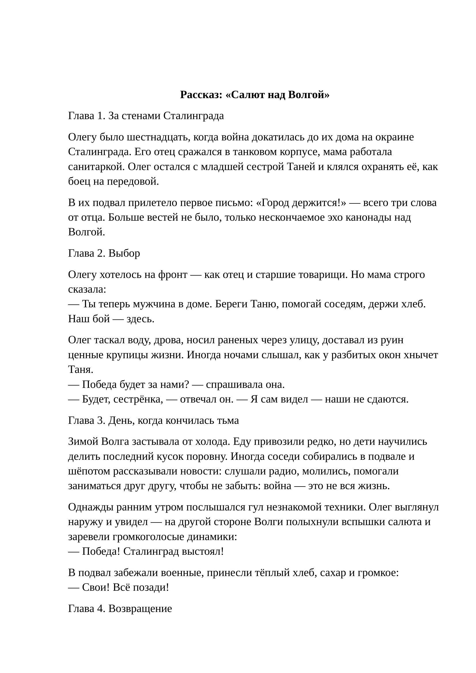рассказ Салют над Волгой
