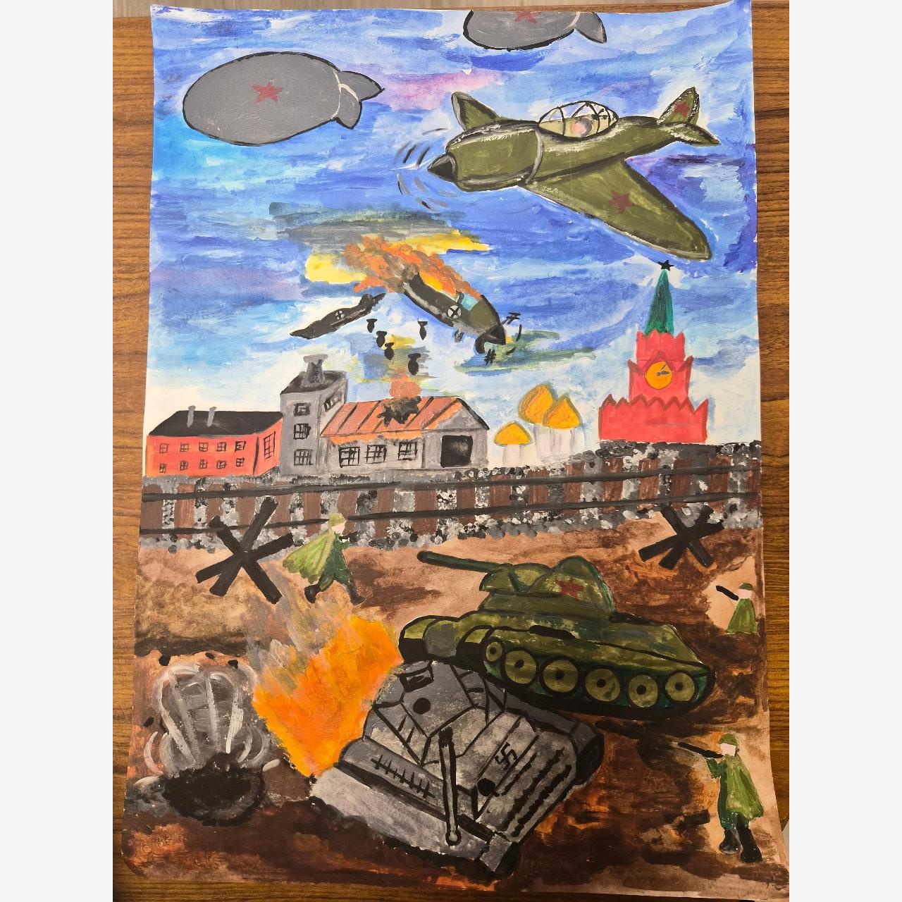 Москва Из поэмы «Ради жизни на земле» ....... Кремль укрыли камуфляжем, – Вот уж, право, чудеса! Краснозвёздных экипажей Стало больше в небесах. Над Москвой аэростаты, Как небесные киты, Распластались плотной стаей, Нас прикрыли с высоты. Против танков рвы копали, Укрепляли рубежи, Из трамвайных рельс клепали Непролазные ежи. Баррикады городили, Волокли мешки с песком, Доты, дзоты возводили – Чтоб, как крепость, каждый дом! ....... Гуаш, А3.