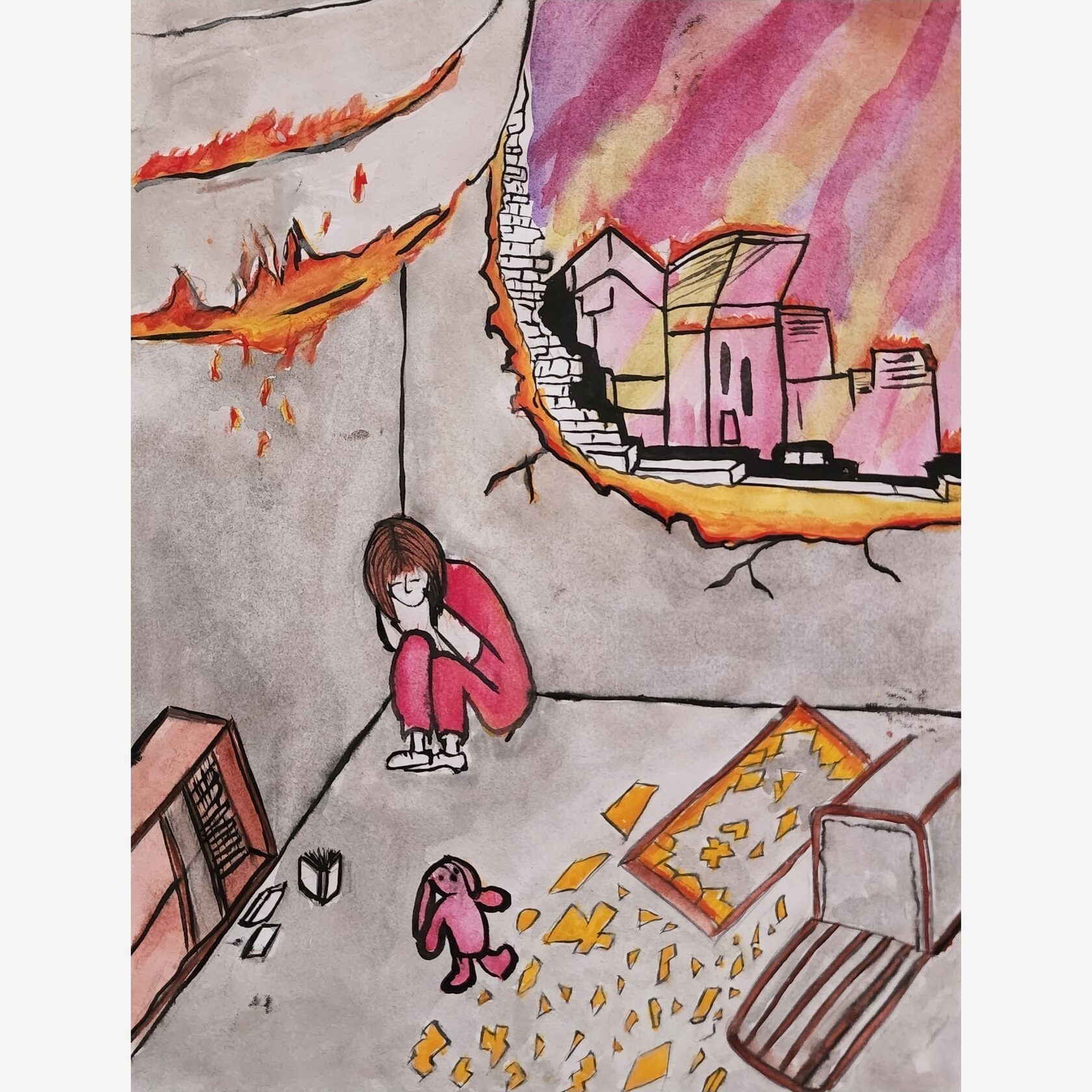 Алина -волонтер патриотического клуба "Солнечный Ангел", она не понаслышке знает, что такое война. В работе "Разбитое стекло" Алина выразила детскую боль, которая навсегда останется в ее сердце.