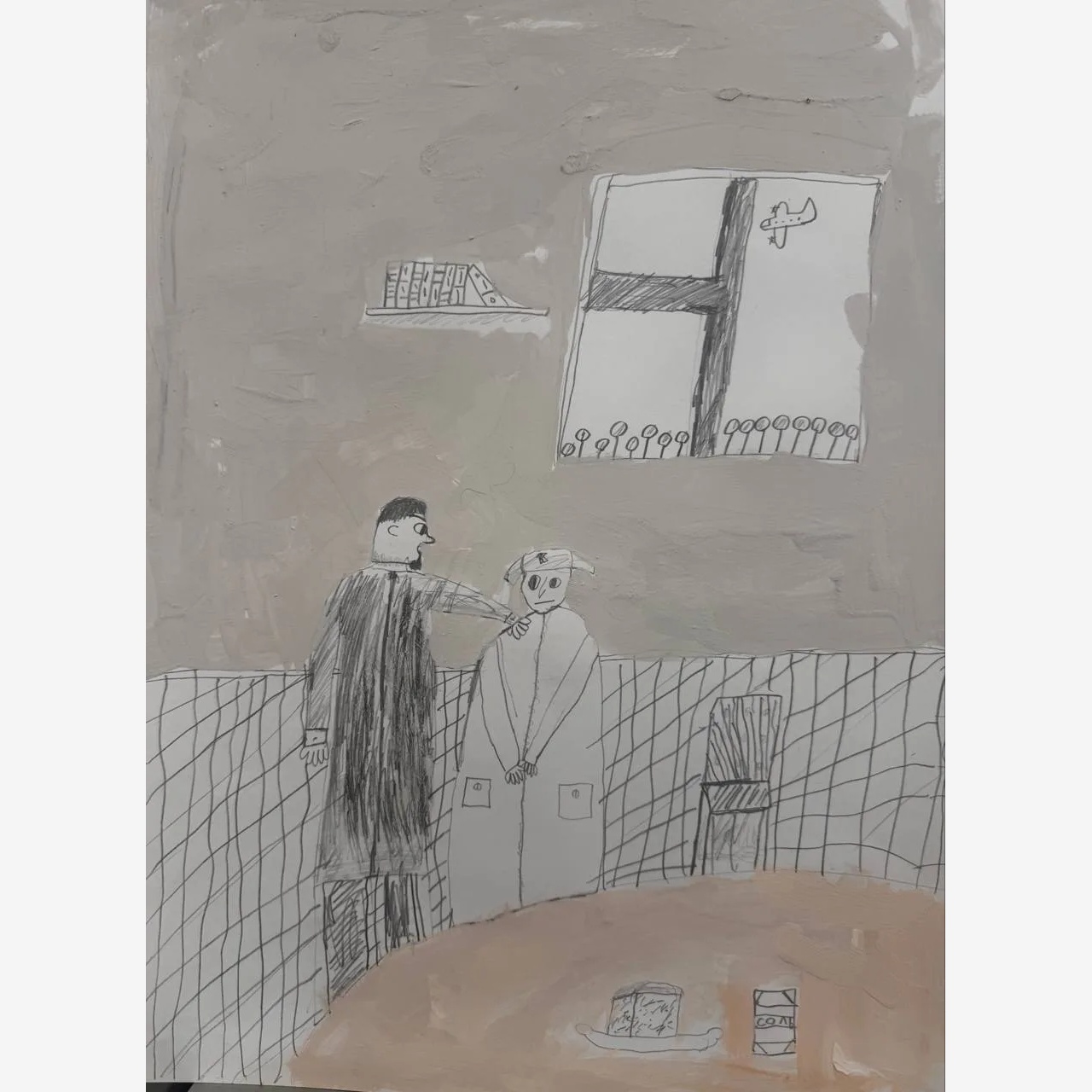 "ОКЦ ЦАО Управление "Изобразительного искусства". Марк изобразил на рисунке как военный врач помогает пациенту несмотря на атаку самолетов