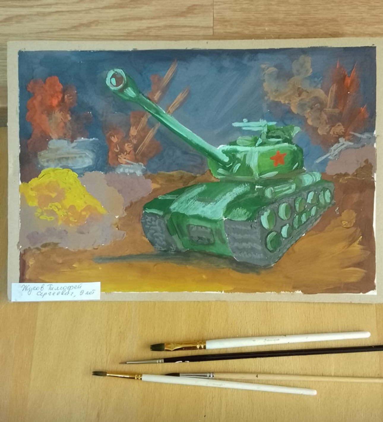 На рисунке изображено сражение на поле боя. Работа выполнена красками (гуашь). ГБУК г. Москвы "ОКЦ ЦАО" ОСП Дом культуры "Стимул"