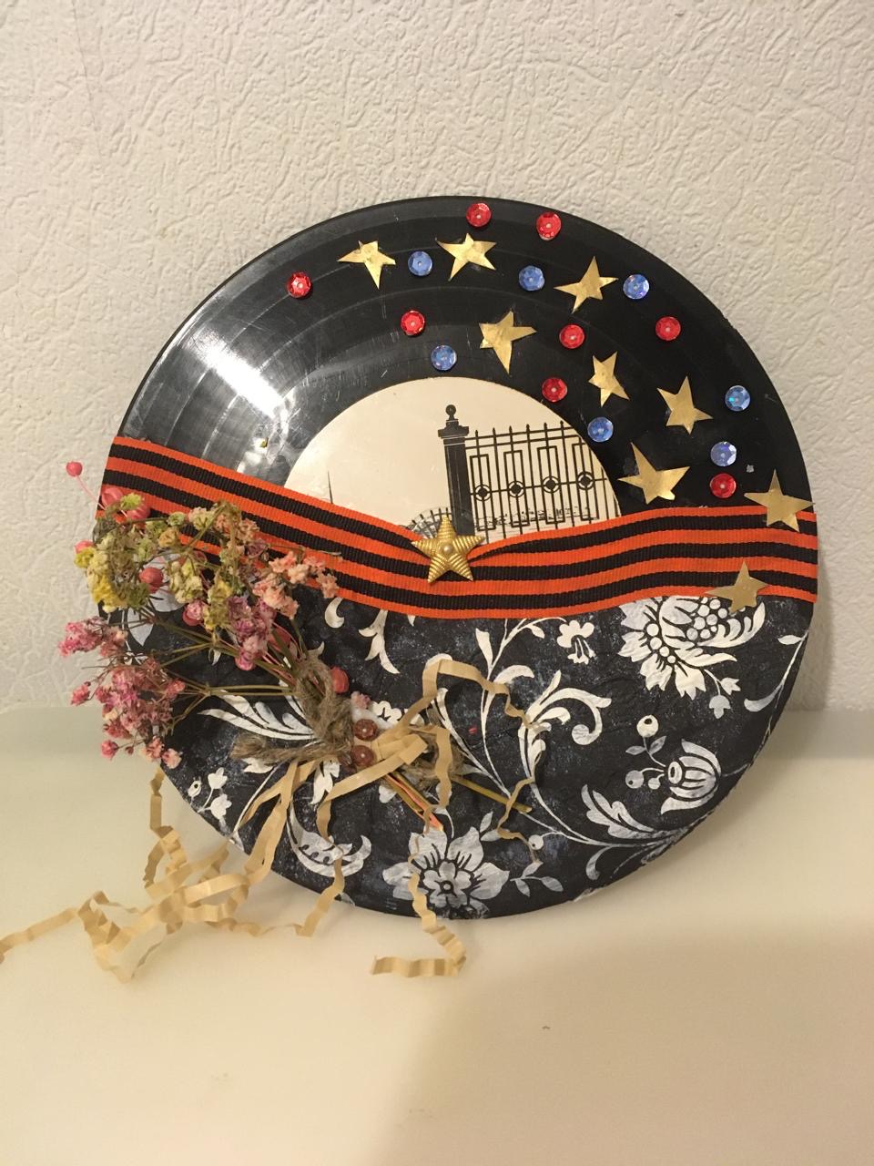 Художественная работа выполнена на старинной виниловой пластинке