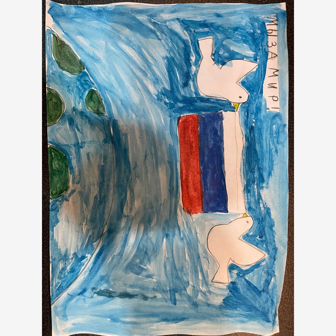Володя- ребенок-инвалид. Он очень дюбит рисовать. Свою работу Володя посвятил всем добрым людям и назвал её "Мы за мир"