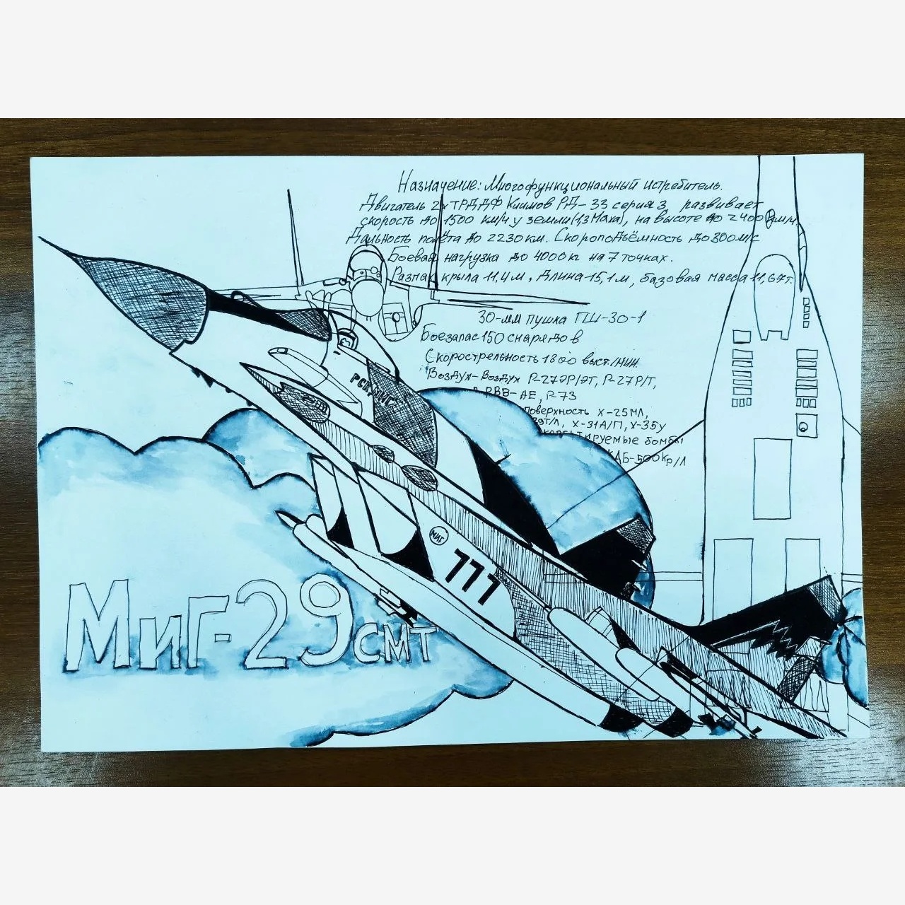 Ярослав занимается в кружке самолетостроение и подготовил работу с техническими характеристиками МиГ-29 СМТ